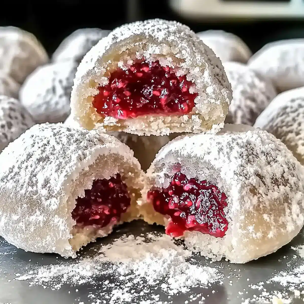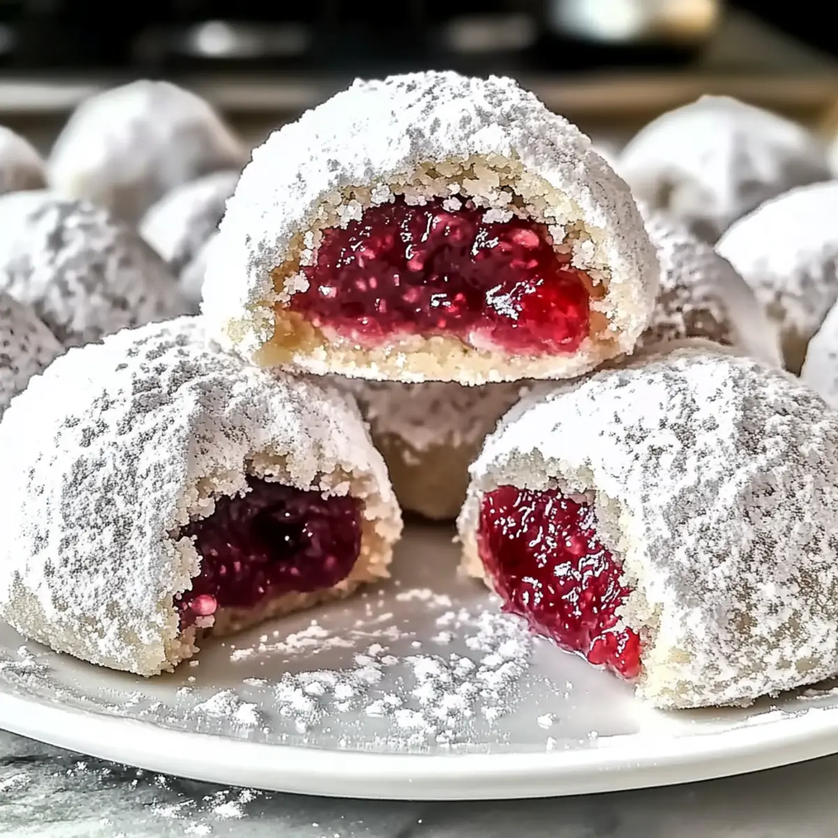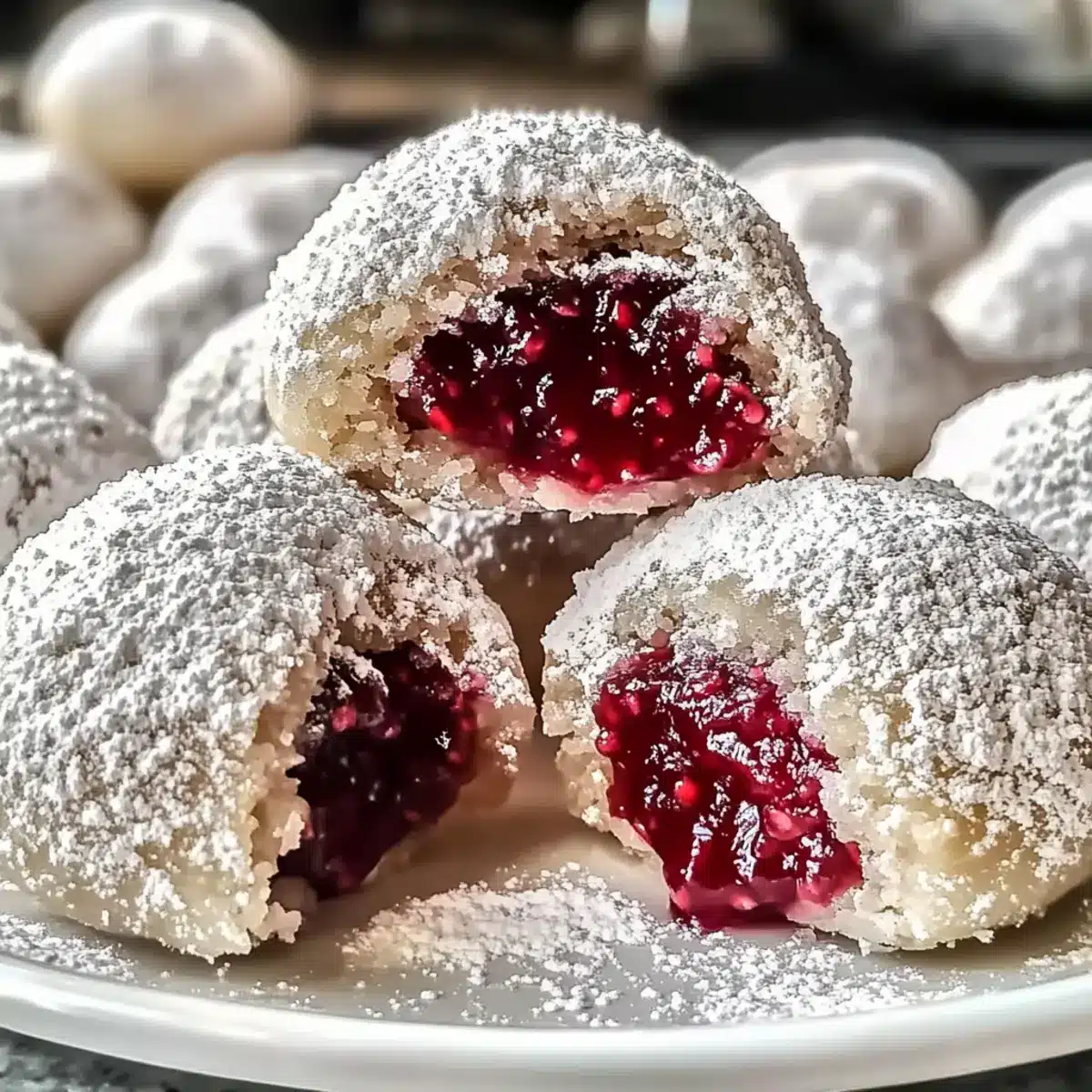 Raspberry-Filled Almond Snowball Cookies: Melt-In-Your-Mouth Bliss