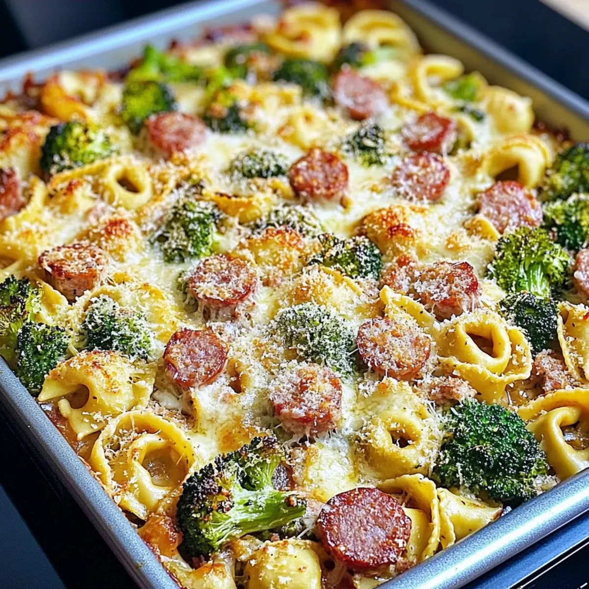 The kitchen filled with a delightful aroma as I tossed the vibrant green broccoli with minced garlic and olive oil—oh, the hints of comfort this One-Pan Cheesy Broccoli Tortellini Bake promises! This easy dinner recipe isn’t just about quick prep; it beautifully marries the creaminess of tortellini with the heartiness of savory chicken sausage, all while keeping cleanup to a minimum. Whether you’re facing a chaotic weeknight or hosting a family gathering, this dish serves as a warm embrace on a plate. Plus, feel free to swap in your favorite ingredients, making it not only delicious but adaptable to your dietary needs. What’s your go-to twist for a comforting meal?