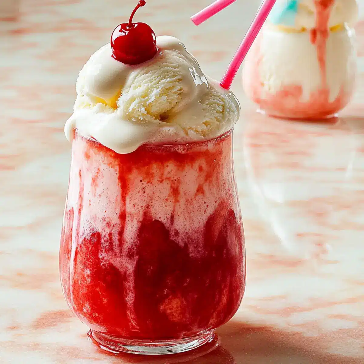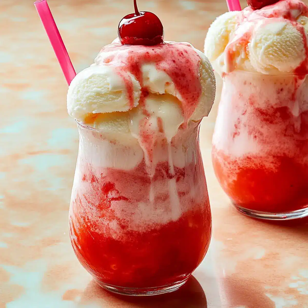 As I stirred my glass, the vibrant red grenadine danced with the bubbly ginger ale, instantly sending me back to sun-soaked summer days and carefree laughter. These 3-Ingredient Shirley Temple Floats are the ultimate summer treat, effortlessly blending nostalgia with a cool, creamy twist. Not only are they a breeze to whip up, but they also strike that perfect balance between drink and dessert, making them a fun choice for all ages. Whether you enjoy the classic combination or opt for the zesty orange soda variation, this delightful concoction will surely impress your family and friends. Ready to elevate your warm-weather gatherings with a touch of whimsy? Let’s dive into this refreshingly simple recipe!