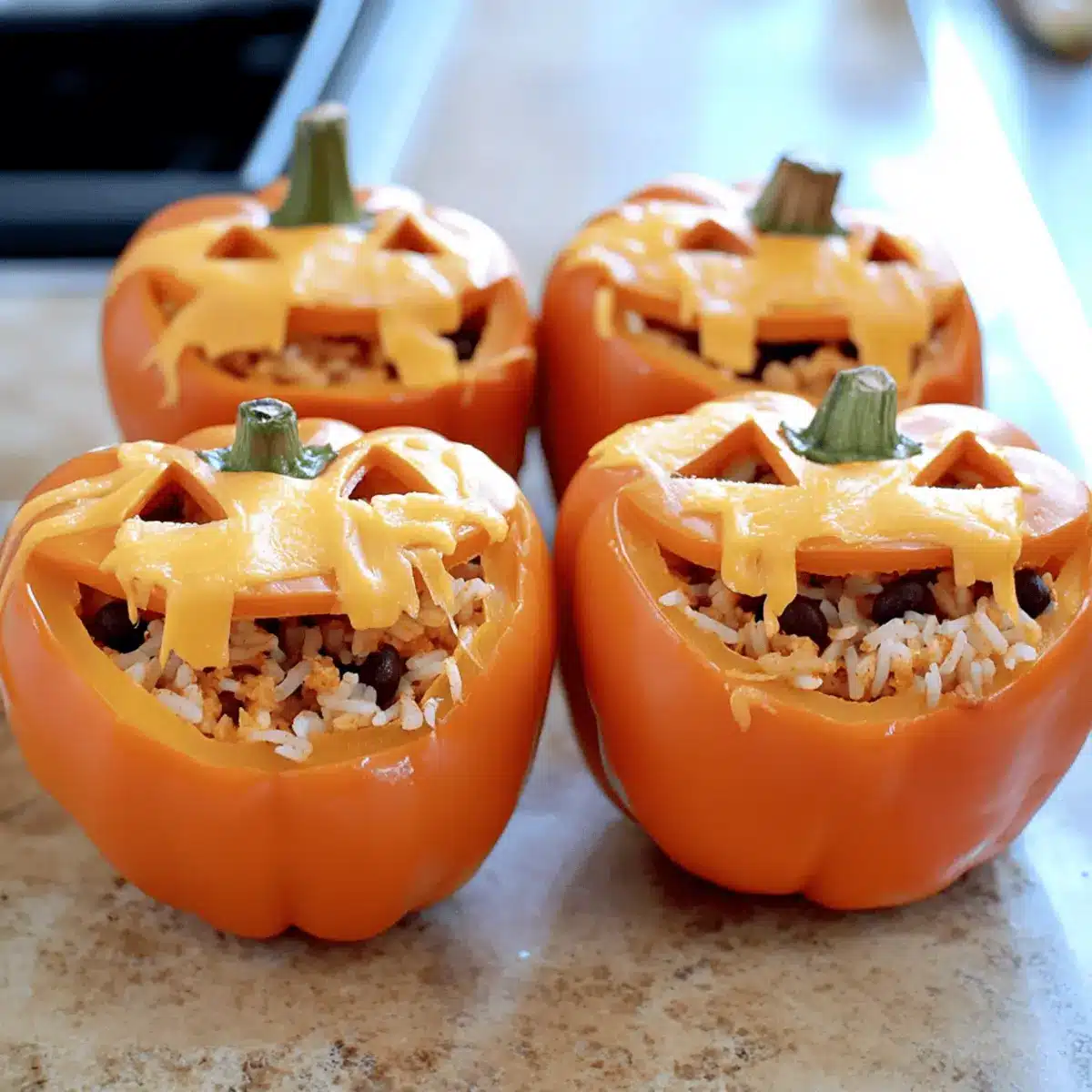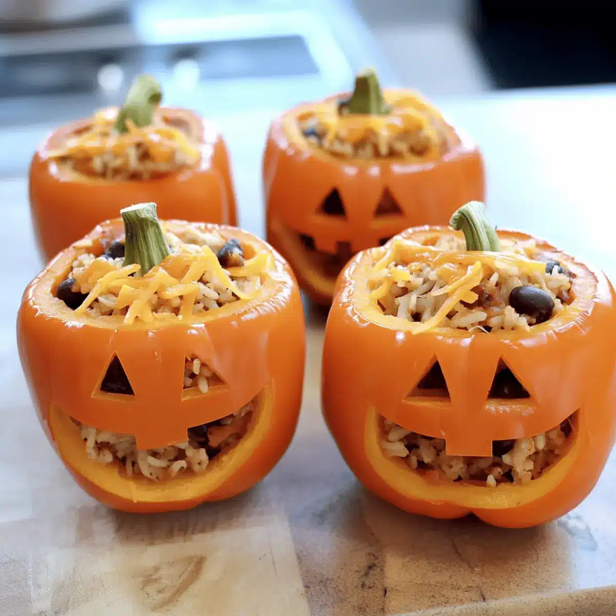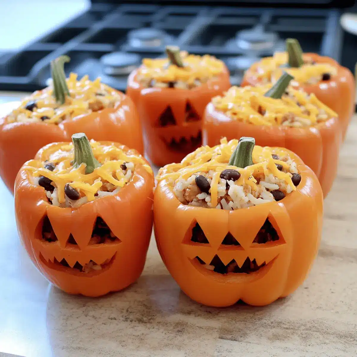 Shredded Chicken & Rice Stuffed Peppers Halloween Style Delight