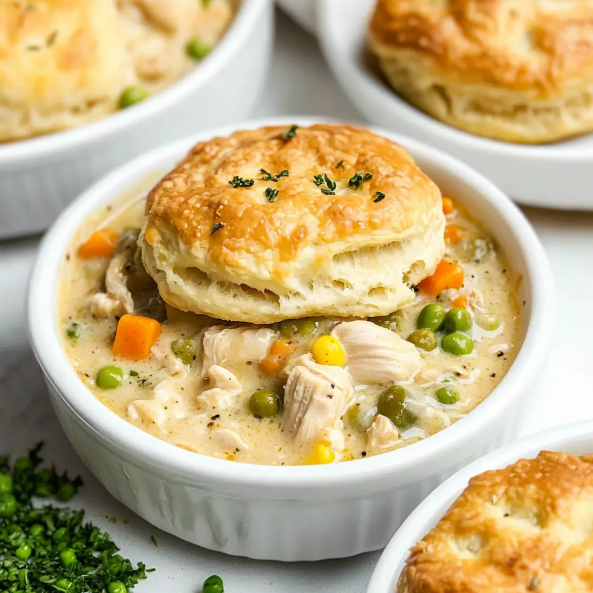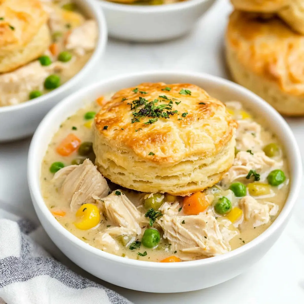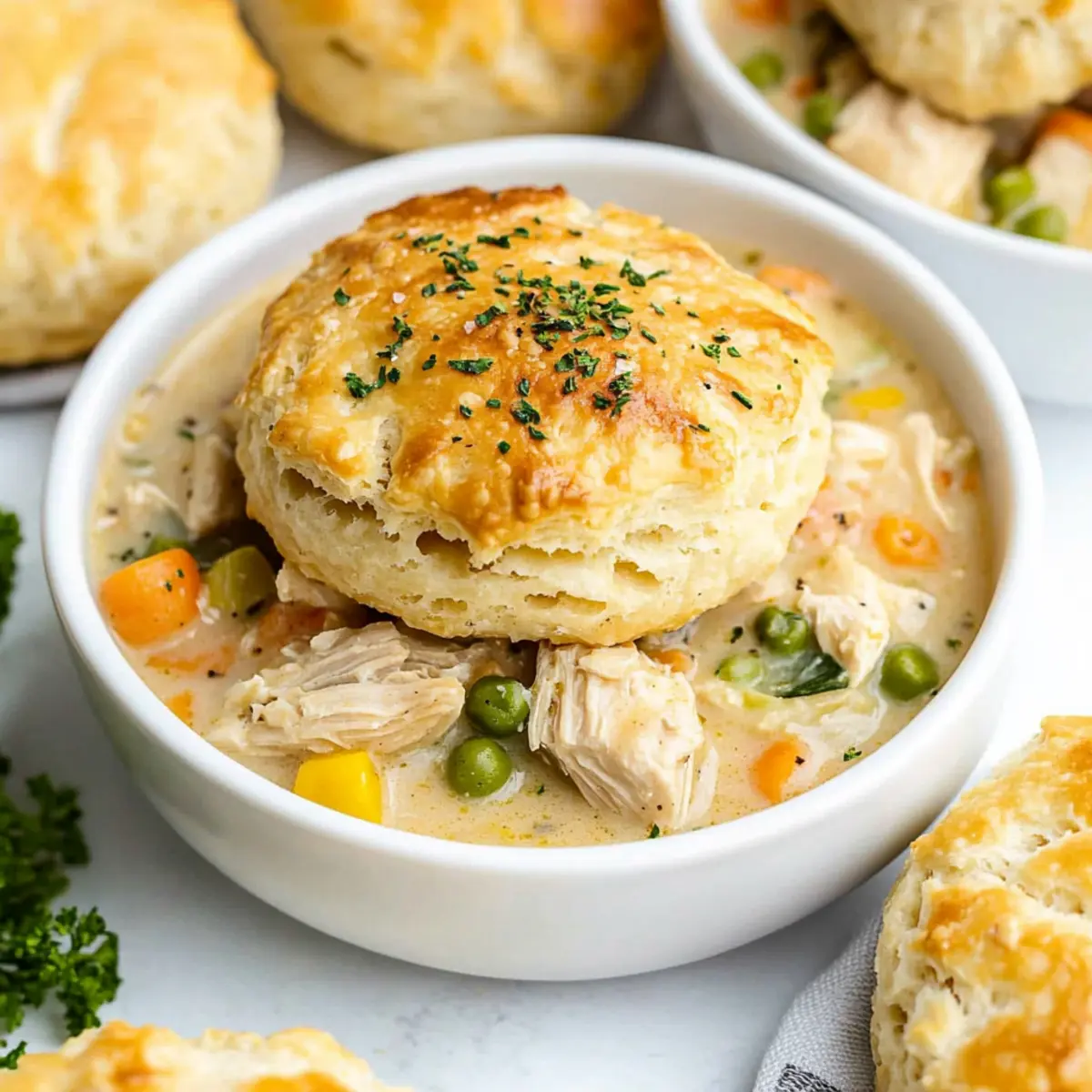 Savory indulgence: Rich, creamy flavors mingle with tender vegetables and flaky biscuits, creating a dish that warms the heart and soul.