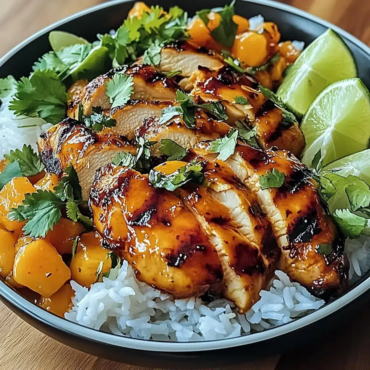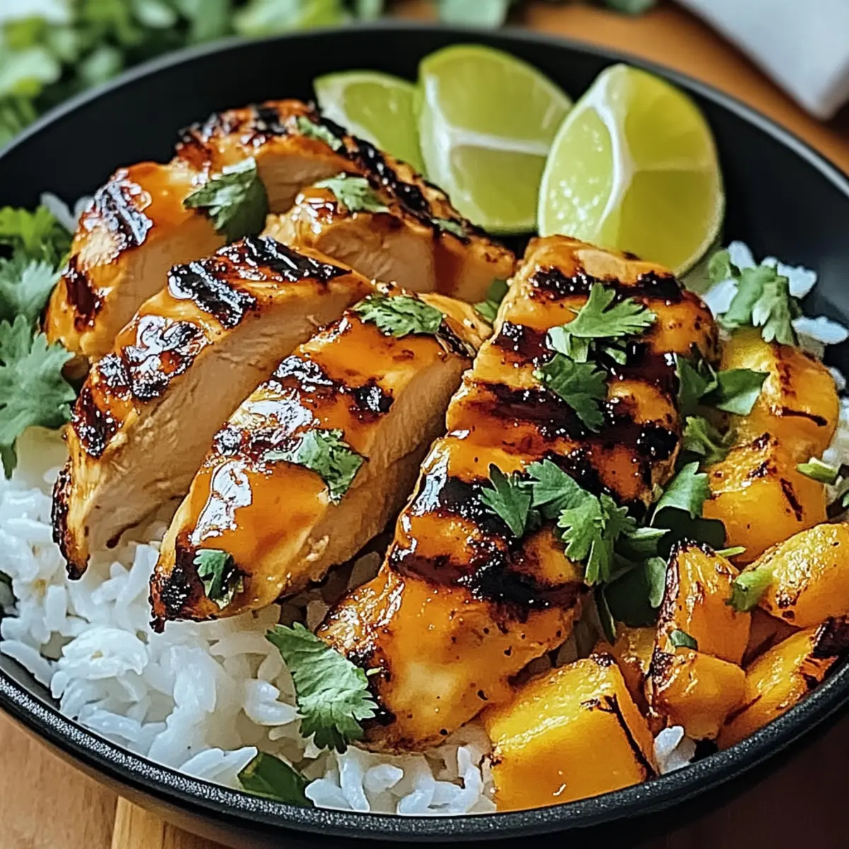 - Serve by placing coconut rice in bowls, topping with chicken, and garnishing with cilantro, lime juice, coconut flakes, and green onions.