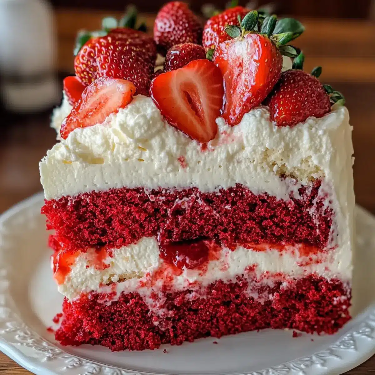 These Strawberries and Cream Dream Layer can be a lifesaver for busy weeknights or special occasions! To simplify your prep, you can bake the red velvet cake and cool it up to 24 hours in advance, storing the layers covered in plastic wrap at room temperature. The cheesecake filling can also be prepared ahead of time; just store it in an airtight container in the fridge for up to 3 days. For the strawberry compote, prepare it and refrigerate it for the freshest flavor. When you’re ready to assemble, layer the cake with the chilled filling and compote, and let it chill for at least 4 hours before serving. This way, you’ll enjoy a stunning dessert with minimal effort!