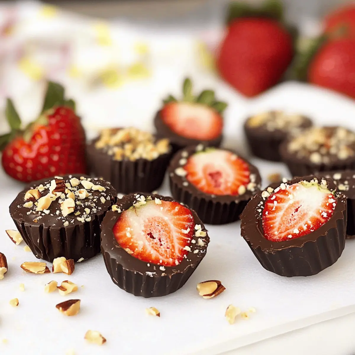 These Quick and Easy TikTok Strawberry Chocolate Bites are perfect for meal prep, making them a fantastic time-saver for busy weeknights or festive gatherings! You can prepare the chocolate coating and slice the strawberries up to 24 hours in advance; simply melt the chocolate and store it in an airtight container in the fridge. Keep the strawberries in a separate container and refrigerate them to maintain their freshness. When you’re ready to serve, pour the melted chocolate into muffin cups, add the strawberries, and chill for about 30 minutes until set. Sprinkling your chopped nuts just before serving ensures they stay crunchy, delivering delicious, effortless bites whenever you need them!