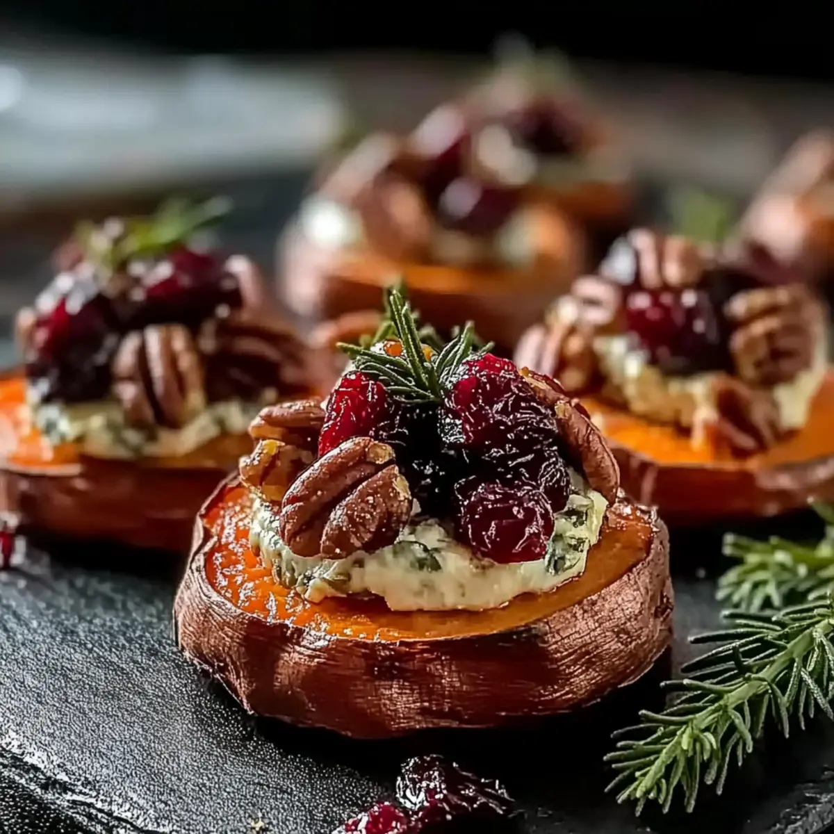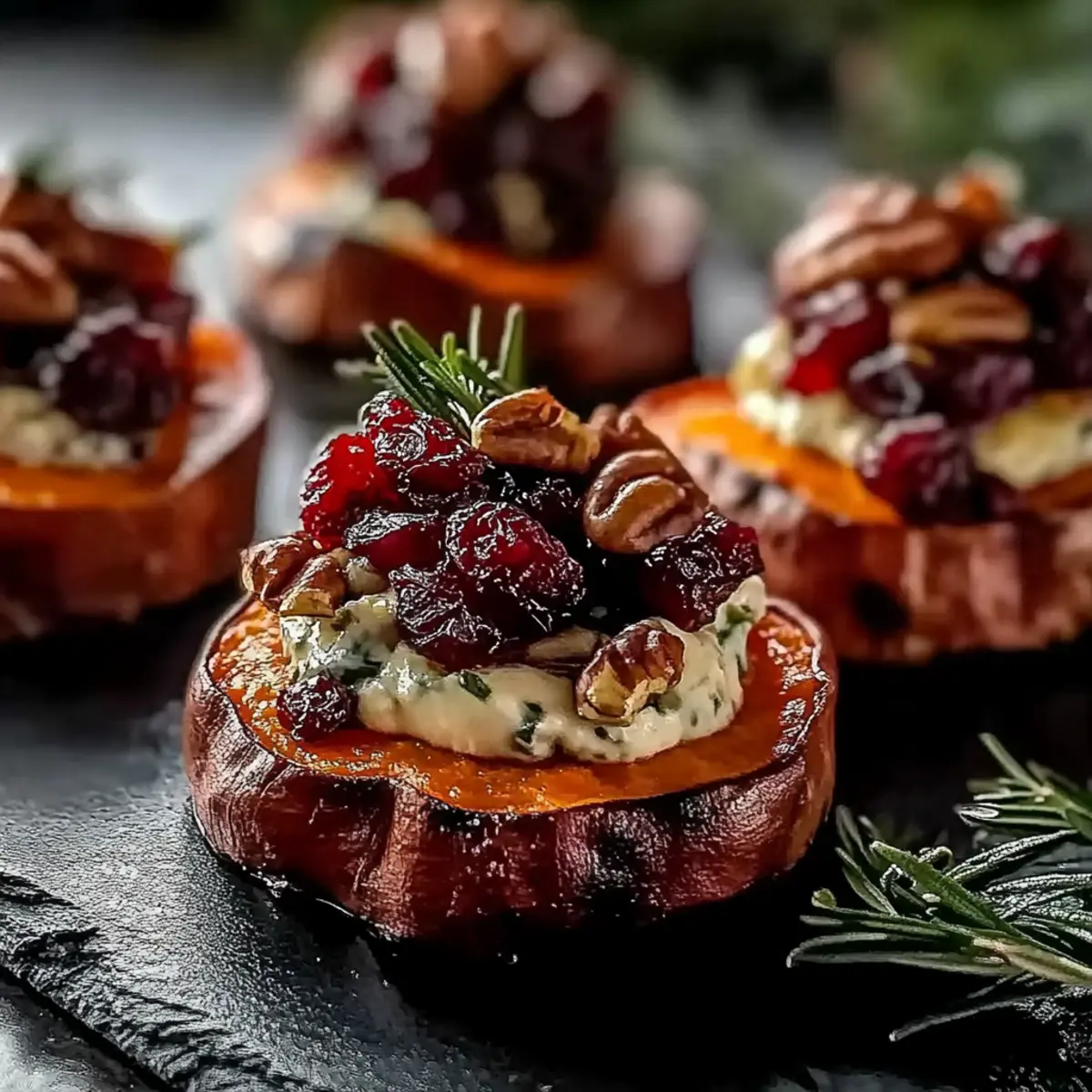 Elegant Sweet Potato Rounds with Brie Cranberry and Pecans