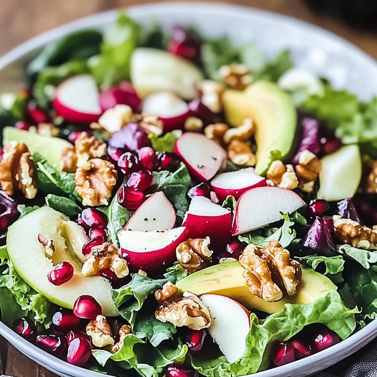 - Pomegranate Seeds – Introduces sweetness and vibrant color; replace with cranberries if needed.
