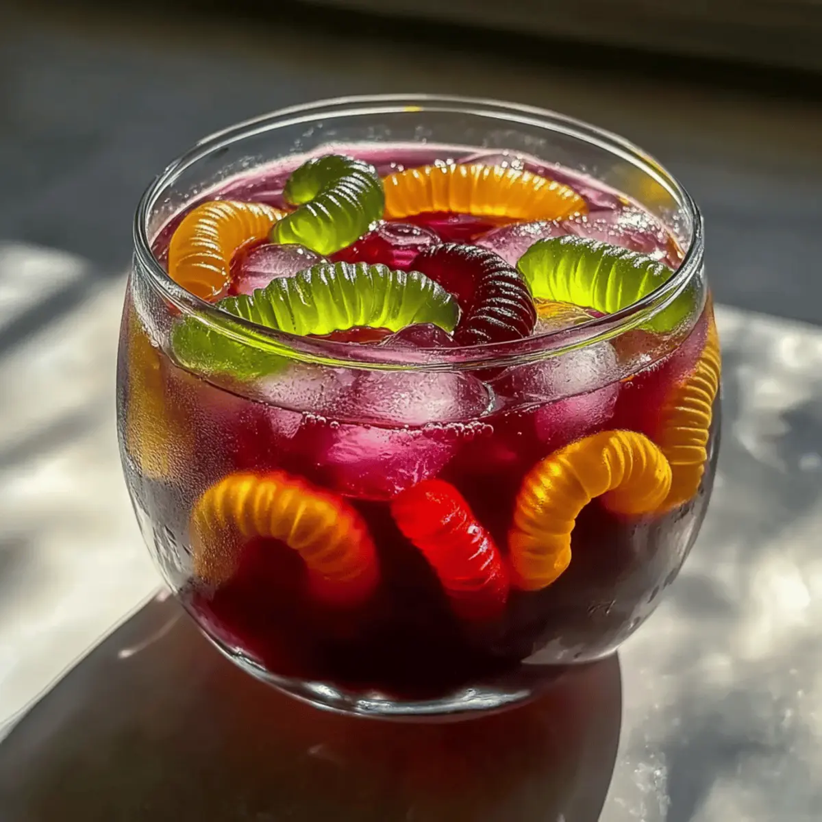 Just before you’re ready to serve, add a handful of gummy worms to the punch bowl. As they float among the bubbles and colors, they create a delightful, spooky effect perfect for Halloween festivities. Make sure to distribute them evenly for that enchanting visual touch.