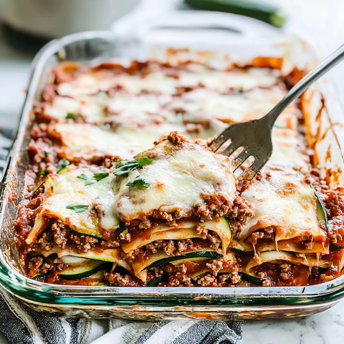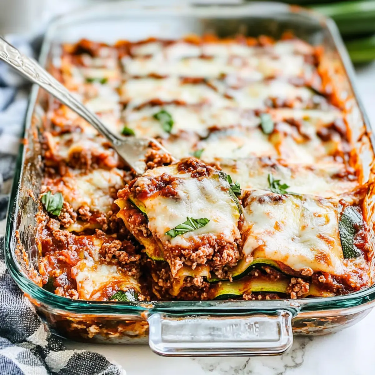 Before serving, sprinkle freshly chopped basil over the top of your zucchini lasagna for a burst of color and flavor. This delightful touch of herbiness will elevate your dish, making it even more inviting. Serve warm and enjoy the hearty, satisfying layers that redefine comfort food in a low-carb style!